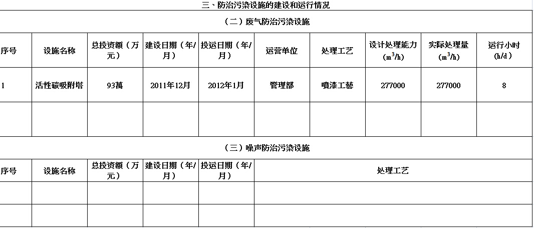 - 2. 喷漆废气配套有10套活性炭吸附塔污染防治处理设施,依使用量及排放时间来更换活性碳;